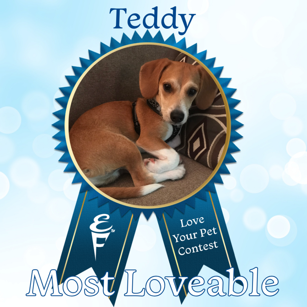 HI! My name is Teddy! I love snuggling on the couch in front of a nice cozy fire. My hobbies are snuggling with my parents, chasing my tail and sitting like a prairie dog while guarding my home. My favorite snack is bacon and I love barking at squirrels and burrowing under the covers.